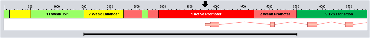 Next, the chromatin state track is consulted to determine the promoter region for the selected transcript.