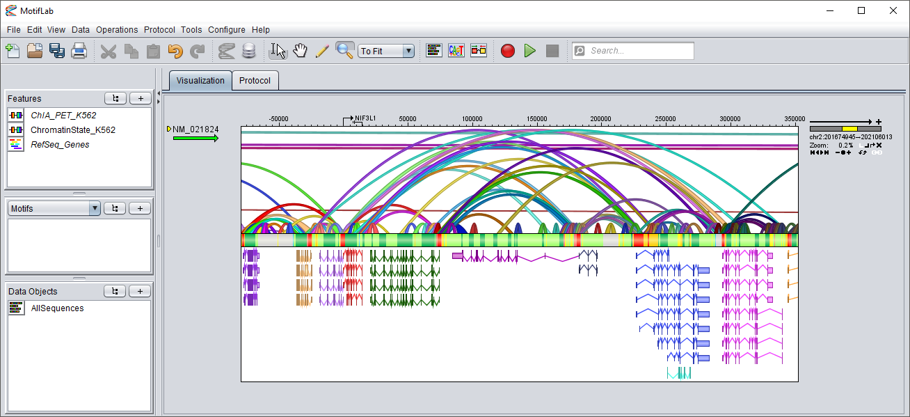 The enhancer highlighter is a nifty tool that allows you to select a gene and highlight its promoter region and any distal enhancers that interact with the promoter